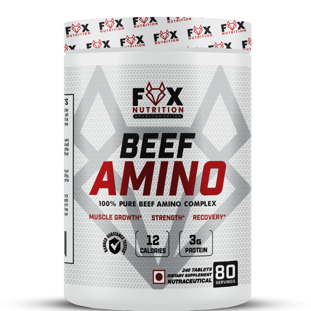 Fox Nutrition Beef Amino delivers a concentrated amino profile from beef protein, ideal for athletes seeking the best beef amino supplement to support muscle recovery and lean growth. Each serving supplies low calories and steady nutrition, making these premium muscle-growth amino tablets practical for lifters, bodybuilders and active users.