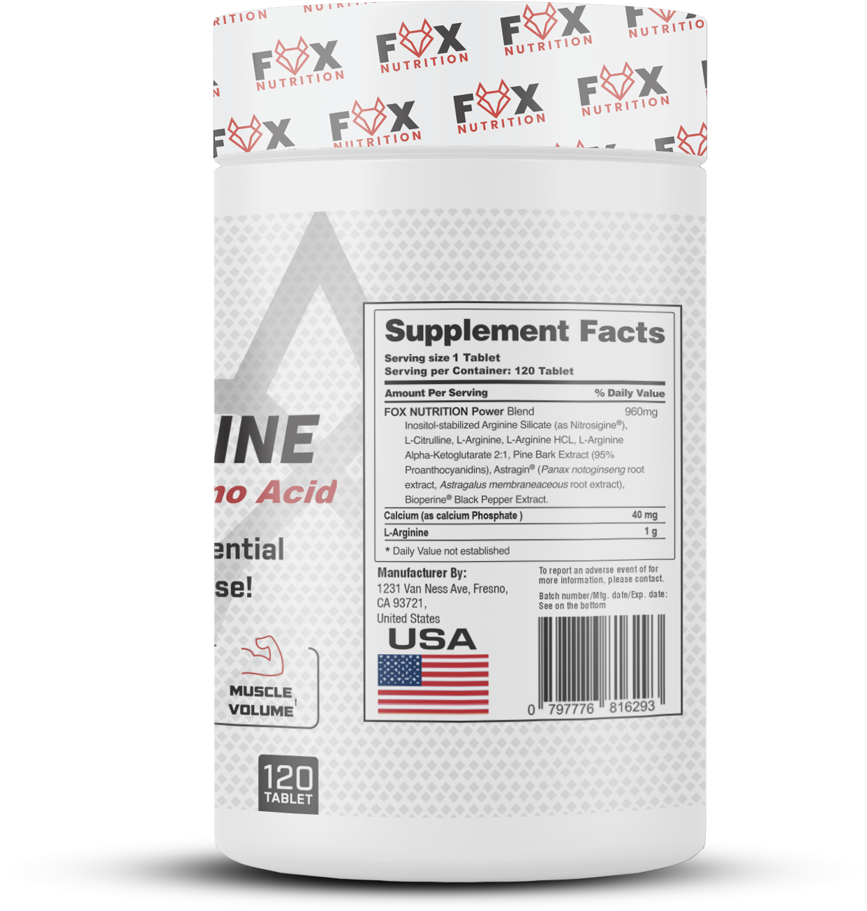 Fox Nutrition L-Arginine Free Form tablets are formulated for athletes who want the best L-Arginine tablets for blood flow, pumps, and training intensity. Each dose supports nitric-oxide activity without stimulants and works as the best nitric oxide amino source for pre-workout performance, muscle volume, and physical output.